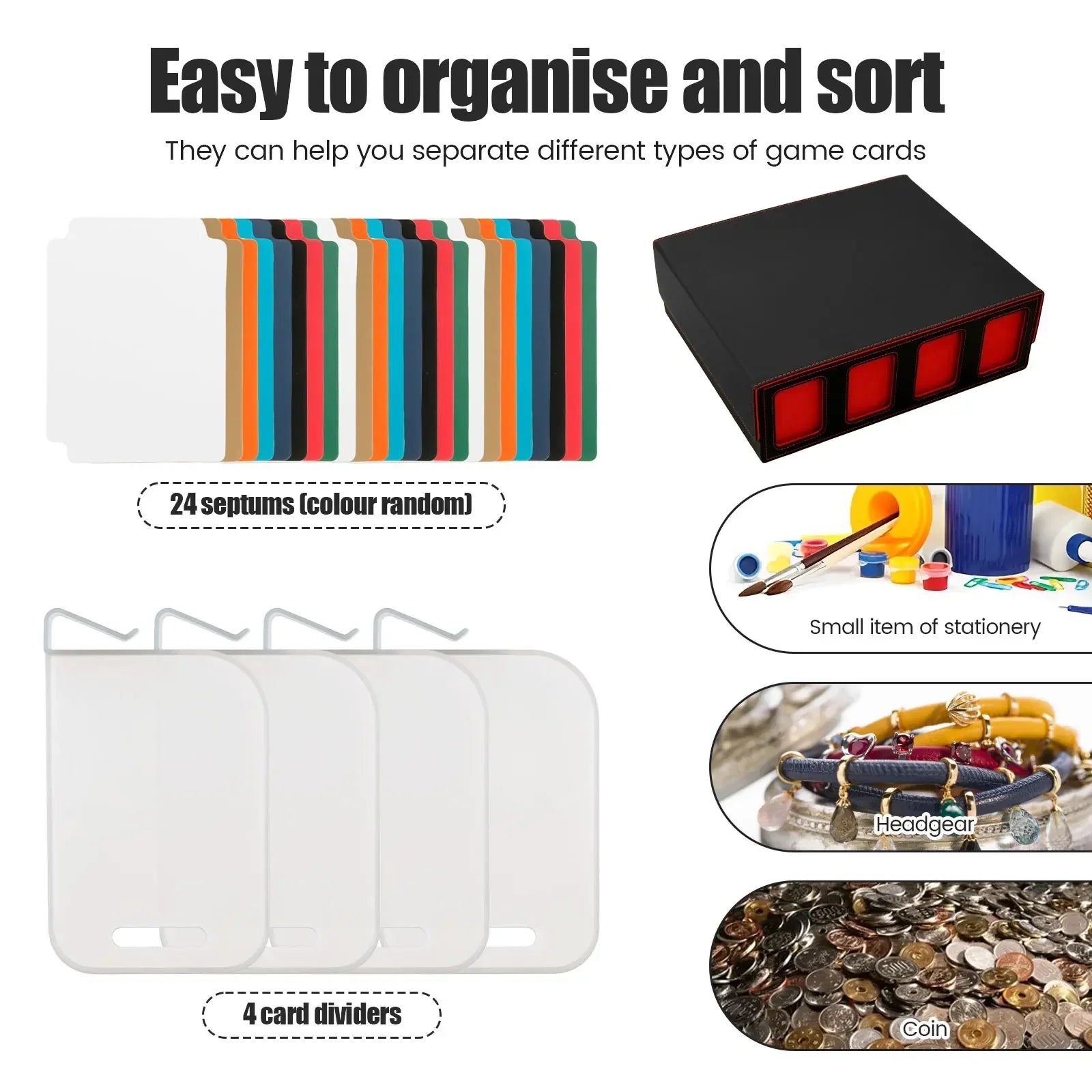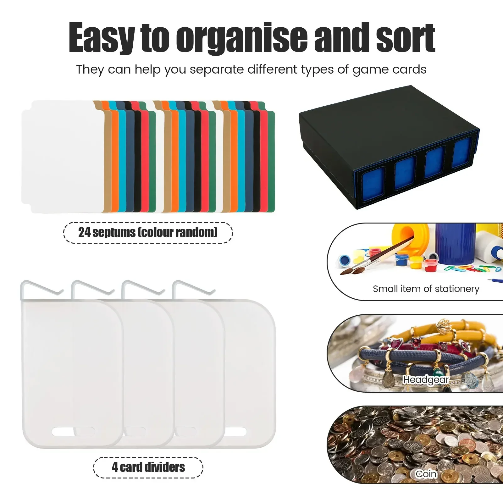 Classified Organization: Comes with 24 card dividers and 4 card holders, they can help you organize and classify different types of game cards. The trading card box organizer is not only suitable for organizing trading cards, but also can be used to organize other items.